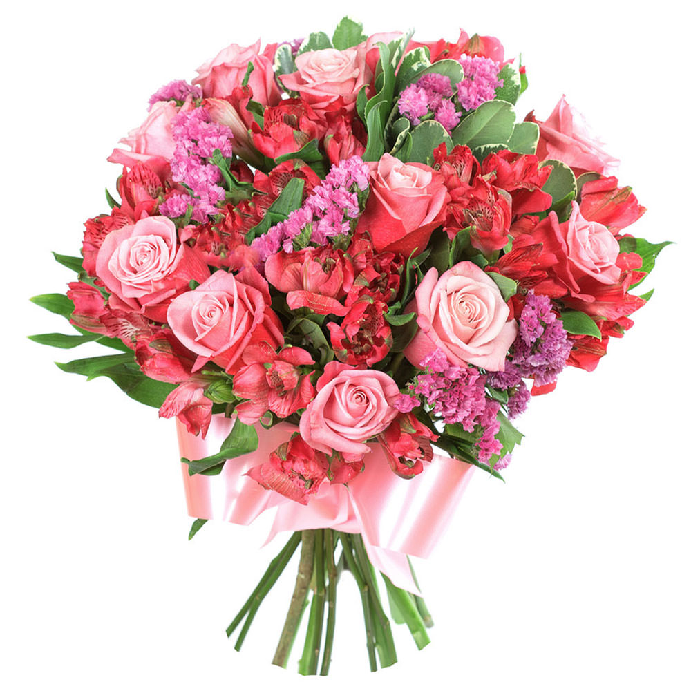 Роза одноголовая, альстромерия, статица, зелень.