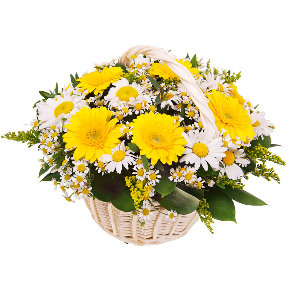 Гербера, ромашка, солидага.